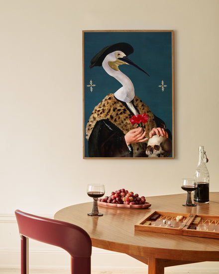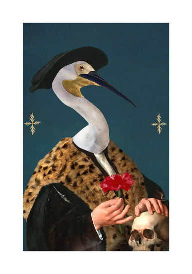 These artworks are created through digital collages. The creator blends animals and ceremonial portraits from the Northern Renaissance, and sometimes elements from Raphael, Leonardo, and masters of the Dutch Golden Age in their works.