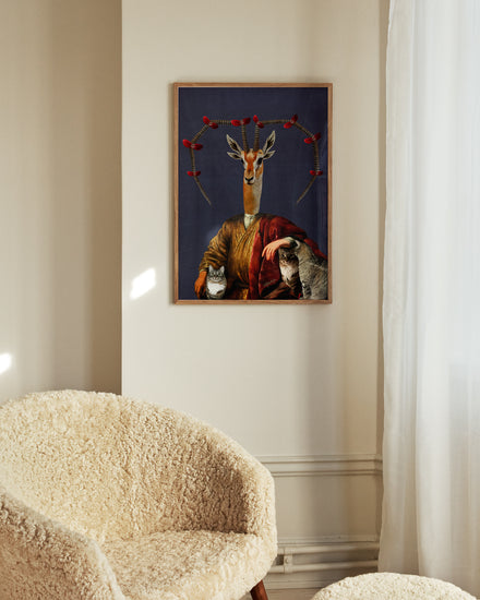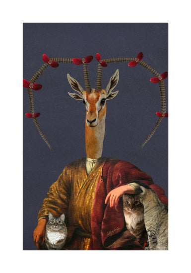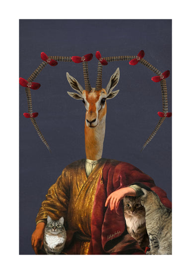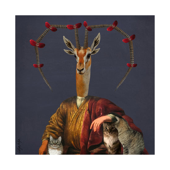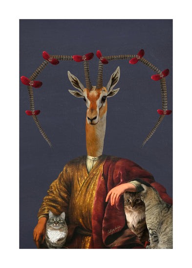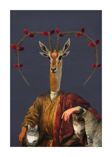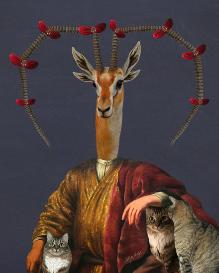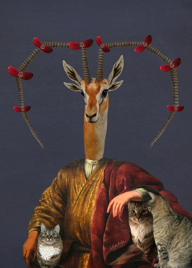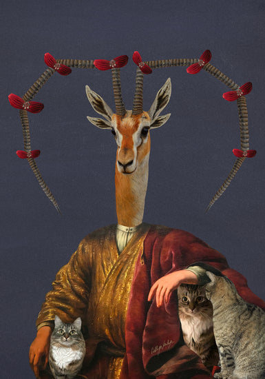 These artworks are created through digital collages. The creator blends animals and ceremonial portraits from the Northern Renaissance, and sometimes elements from Raphael, Leonardo, and masters of the Dutch Golden Age in their works.