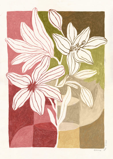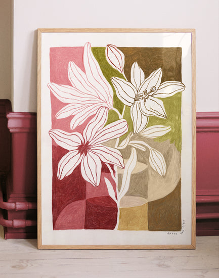 Introducing "Got Myself Some Lillies", the beautiful botanical poster by artist Anouk Van Cleef. Whether you're looking for a thoughtful gift for a special someone or something special to your walls, this poster does it all with style and grace. From her tiny studio in Rotterdam, The Netherlands, the illustration was lovingly hand-created with an incredible level of detail.