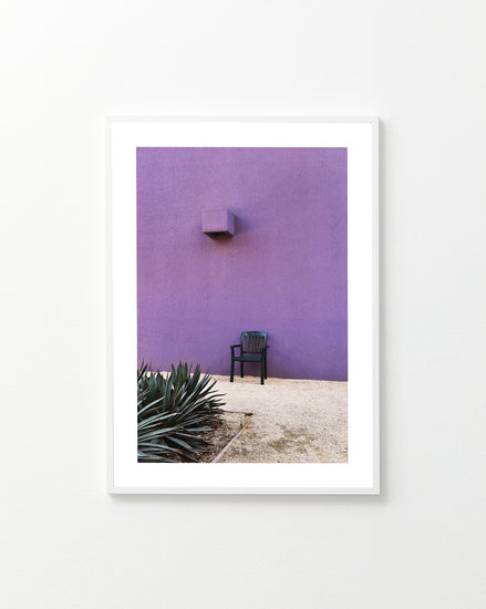 Its vibrant purple backdrop captures the spirit of a lazy summer's day in Downtown LA, with a single chair standing proud against its grandeur.