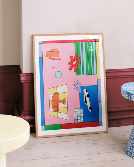 A unique combination of interior design and illustration. This poster collection was created in response to the artists love of interior and furniture design. Initially taking scanned drawings, then refining digitally, the artist creates a library of forms and patterns which they then use to create the unique compositions that will go on to form the final poster. Using and exploring colour dynamics and textures to create a sense of nostalgia and comfort. The posters were created to be viewed individually or displayed as a collection.