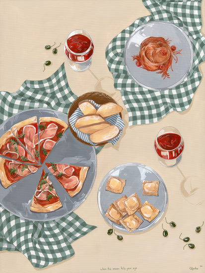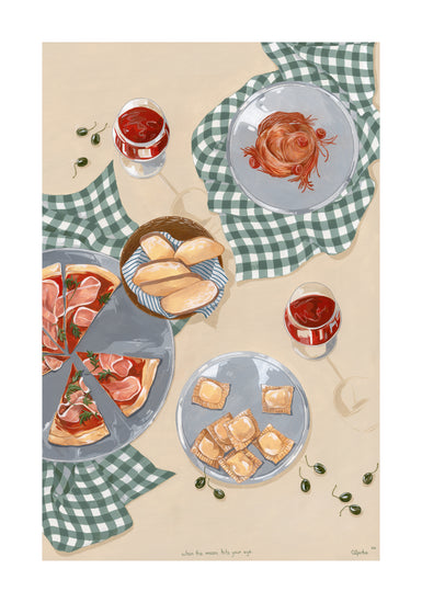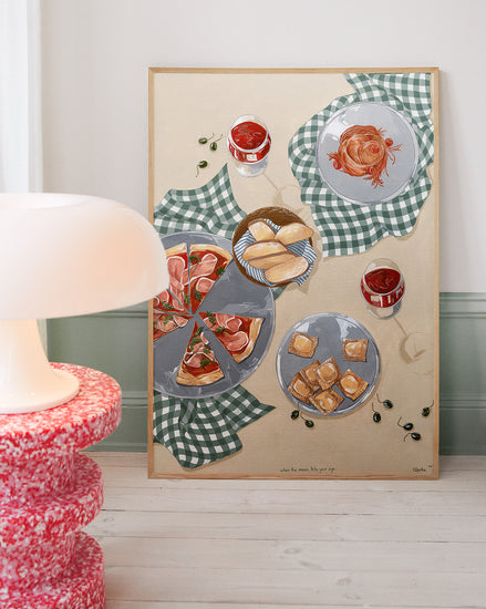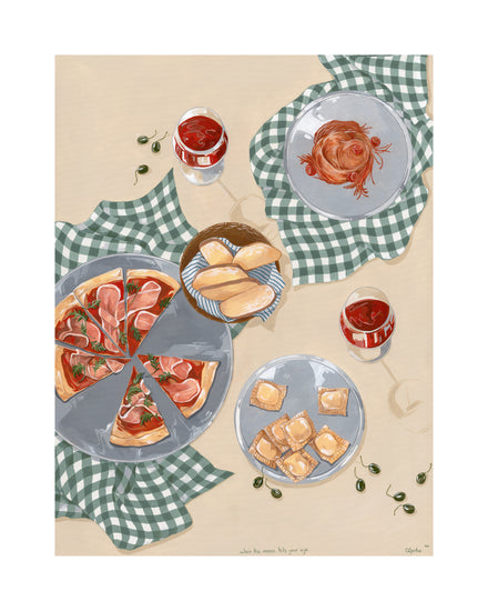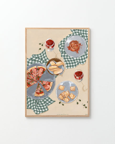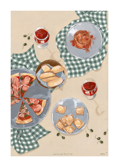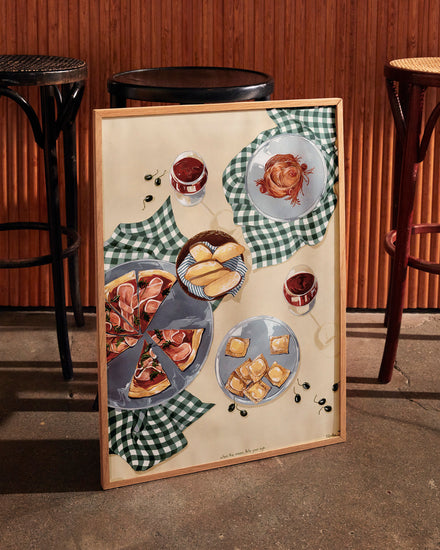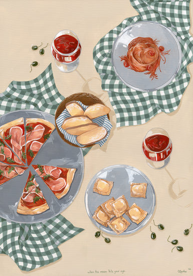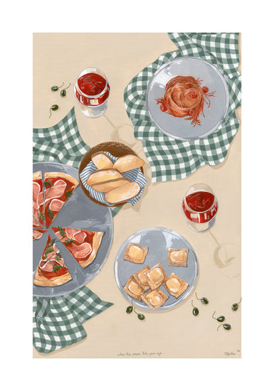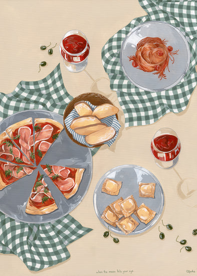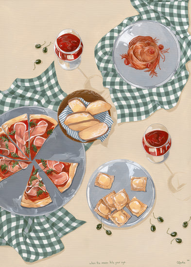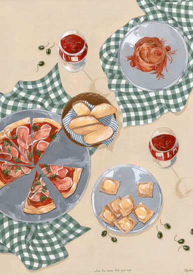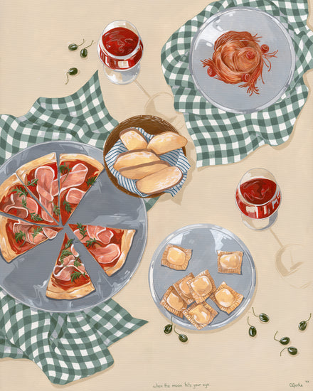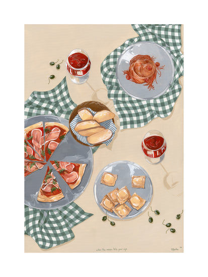 When the moon hits your eye like a big pizza pie... This beautiful poster will transport you directly to an Italian oasis. Invite friends and family over for an evening of Italian dining, or simply gather 'round the kitchen table with just your closest loved ones and eat some pizza and ravioli. Set the perfect mood with some wine and let yourself be filled with romance as you imagine being on vacation in Italy - but hey! No plane ticket necessary with this poster!